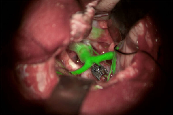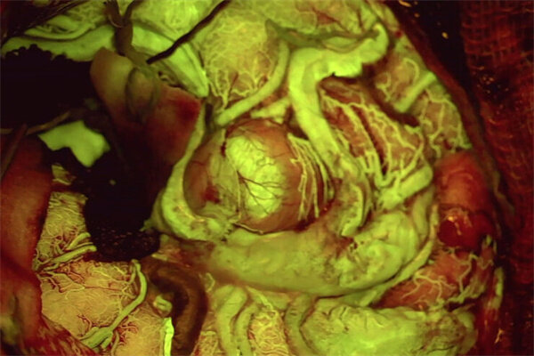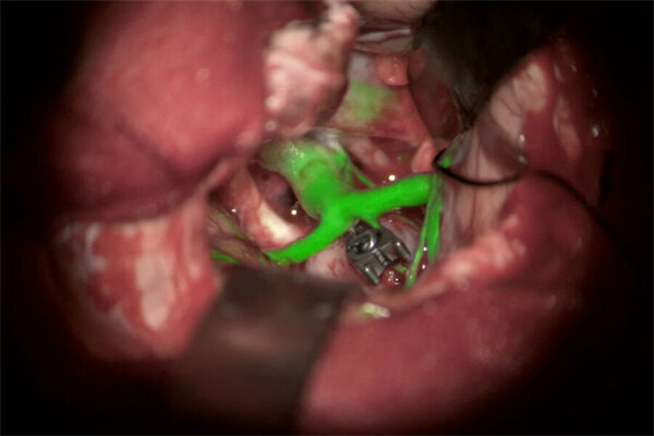 FL560 荧光滤镜:可在动脉瘤修复术中获得单一的实时视图,清晰区分荧光和非荧光区域,对比度高。