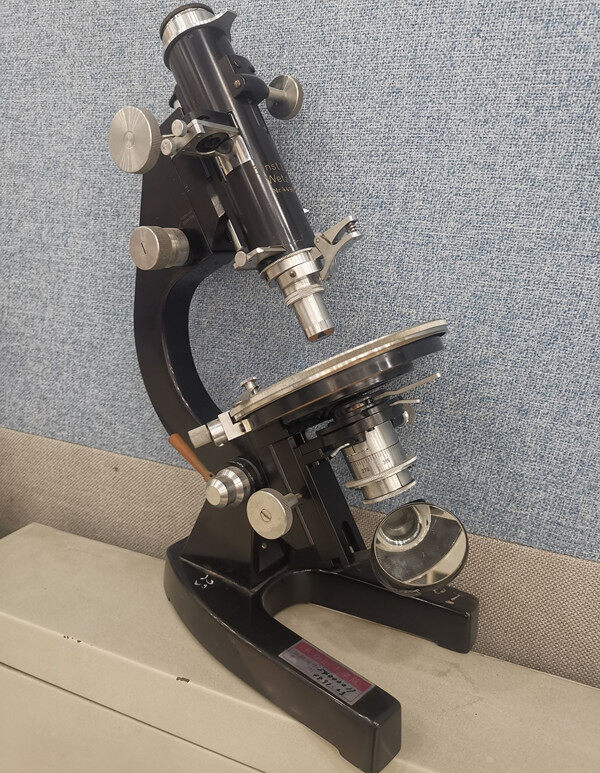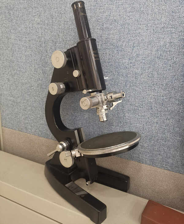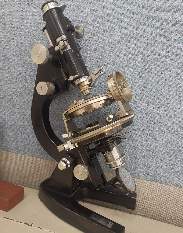 长地院建校初使用的显微镜,在地质人才的培养中发挥了巨大作用。第一幅为反射偏光显微镜,第二幅为加载了费氏台的透射偏光显微镜,第三幅为透射偏光显微镜。