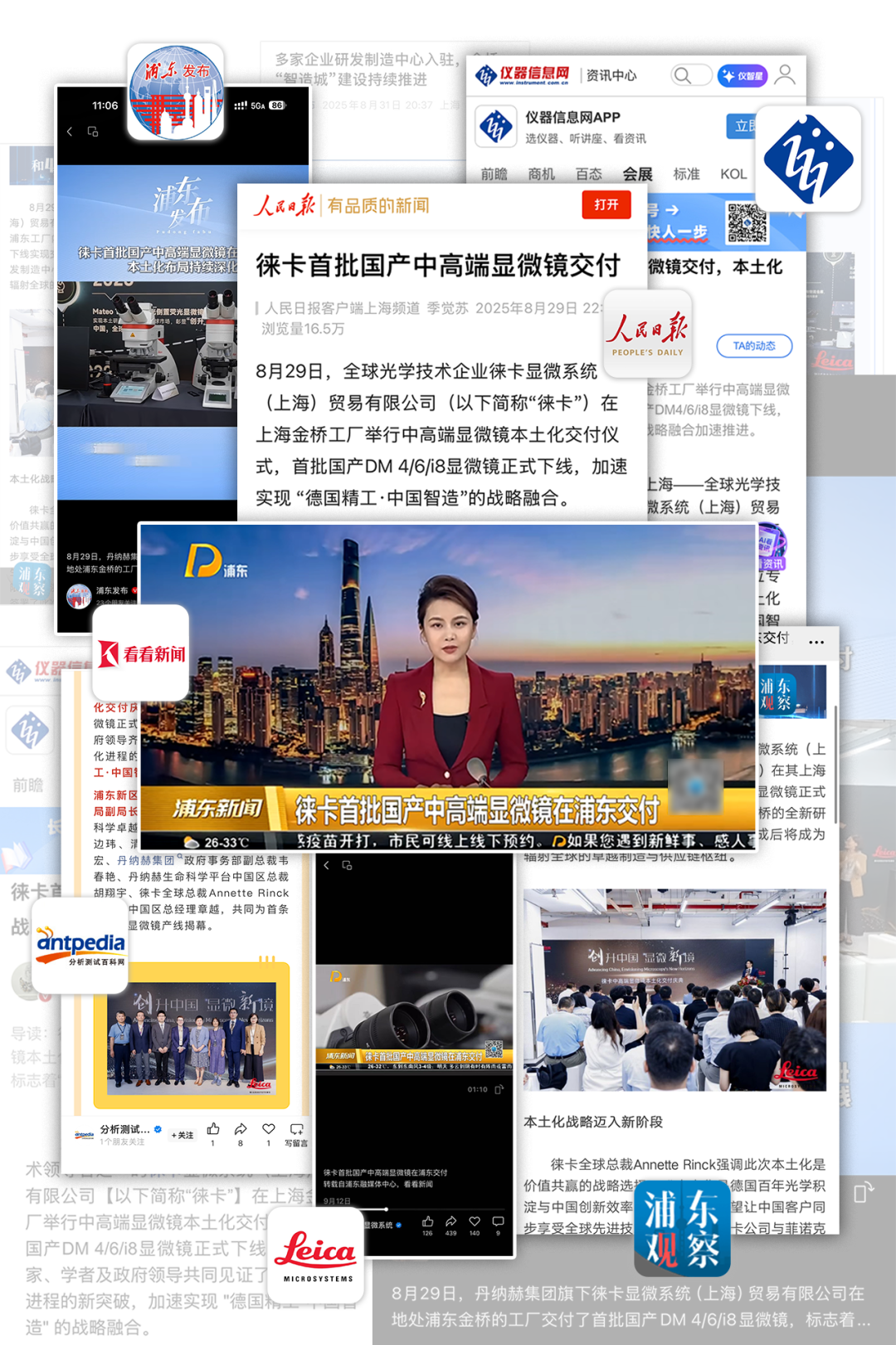 2025年8月,徕卡显微系统金桥工厂成功实现首批中高端显微镜的国产化下线。8月29日举行中高端显微镜本土化交付庆典,近百位专家、学者及政府领导共同见证了徕卡本土化进程的新突破,加速实现 "德国精工·中国智造" 的战略融合。