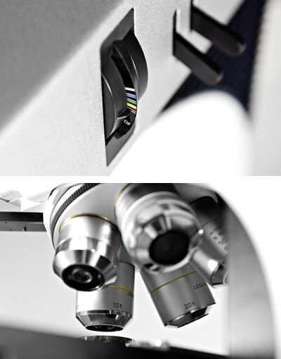 可选择三种显微镜物镜转轮 - 外加一个0.7x的宏物镜,您能通过它一眼看见约40mm长的一个样本,是进行快速定位和概览的理想选择。