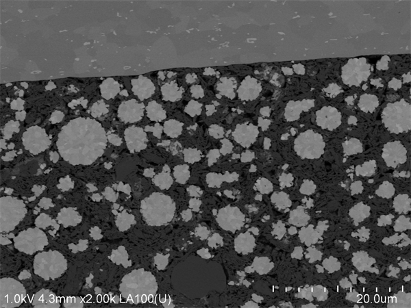离子束切割技术尤其适合多层复合电池材料。如图所示,金属与高分子复合材料经徕卡EM TIC3X加工后,各层边界和缺陷清晰可见,无机械抛光导致的材料涂抹。