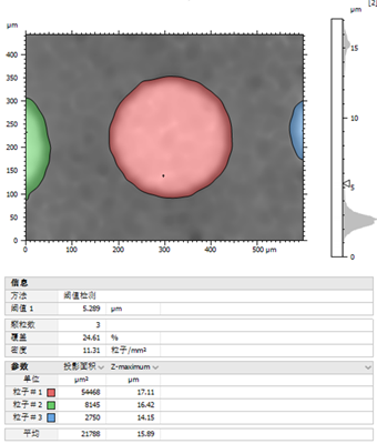 功能体积分析(磨损和润滑),以图形方式显示ISO 25178和Sk功能体积参数,以便于磨损和润滑研究;研究峰值/晶粒/颗粒分布和密度