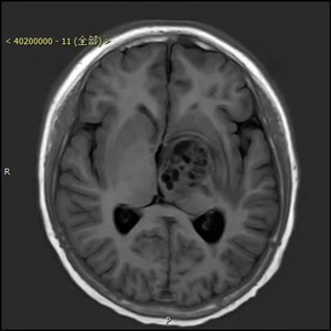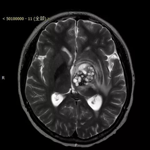 患者是西班牙华侨,在西班牙当地发病并就诊,当地医院认为丘脑肿瘤风险极高,因而无法手术,只能活检,但在未活检的情况下做了化疗。患者化疗效果不好,肿瘤继续长大,偏瘫加重。